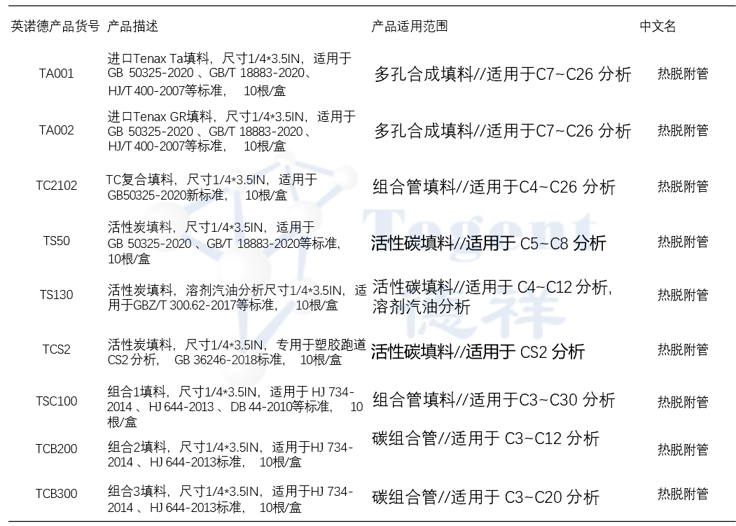 德祥旗下自研品牌英諾德就擁有多種材質和類型的熱脫附管可供科研人員選擇。