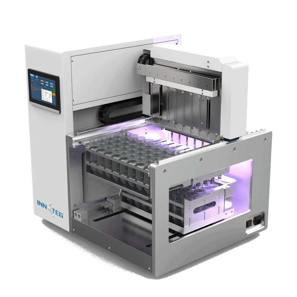 固相萃?。⊿PE)是色譜分析中最常用的樣品制備方式,需要進行活化、上樣、淋洗、洗脫等操作步驟,洗脫完成后還需要經(jīng)過濃縮、復溶等步驟,手動操作較為繁瑣。英諾德儀器的全自動固相萃取儀,全自動完成固相萃取過程,可保證實驗過程每個通道同時進行活化、淋洗、干燥、洗脫操作,自動化程度高。采用穩(wěn)固的龍門架結(jié)構(gòu)和配合注射泵及切換閥, 具有更好的平行性和重現(xiàn)性、更少的交叉污染以及更高的回收率的特點,輕松得到高質(zhì)量和可靠的實驗結(jié)果。
