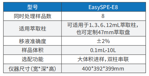 固相萃?。⊿PE)是色譜分析中最常用的樣品制備方式,需要進(jìn)行活化、上樣、淋洗、洗脫等操作步驟。英諾德EasySPE-E8半自動(dòng)固相萃取儀運(yùn)用精密型蠕動(dòng)泵精確控制過柱的流速,提供穩(wěn)定的過柱壓力。“過柱”過程數(shù)據(jù)化:向儲(chǔ)液器中輸送 樣品、溶劑等各個(gè)操作可通過觸摸屏控制軟件完成。同時(shí)進(jìn)行在大體積進(jìn)樣時(shí),處理環(huán)境中的大體積水樣。具有更好的平行性和重現(xiàn)性、更少的交叉污染以及更高的回收率的特點(diǎn),輕松得到高質(zhì)量和可靠的實(shí)驗(yàn)結(jié)果。